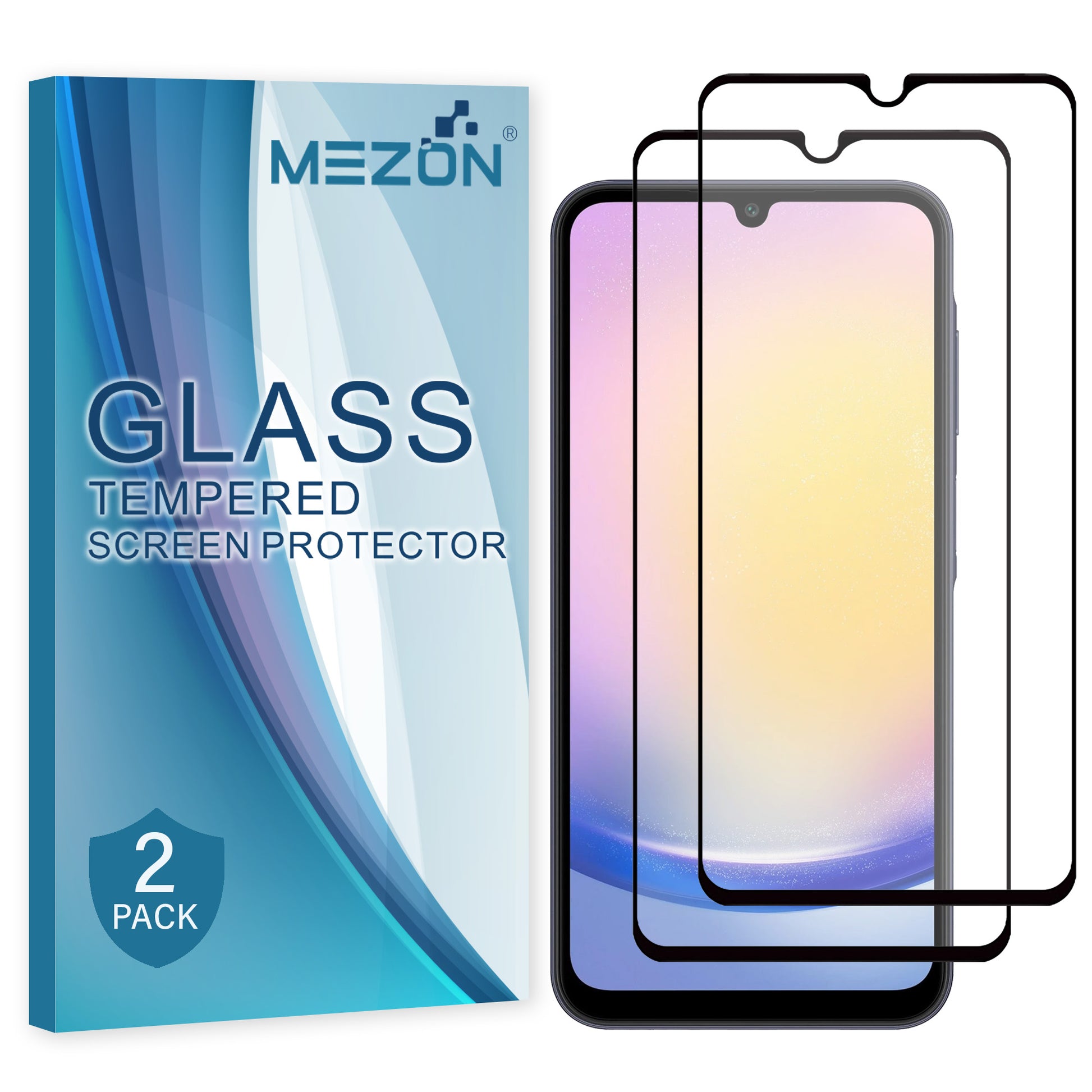 [2 Pack] MEZON Full Coverage Samsung Galaxy A25 5G Tempered Glass Crystal Clear Premium 9H HD Screen Protector