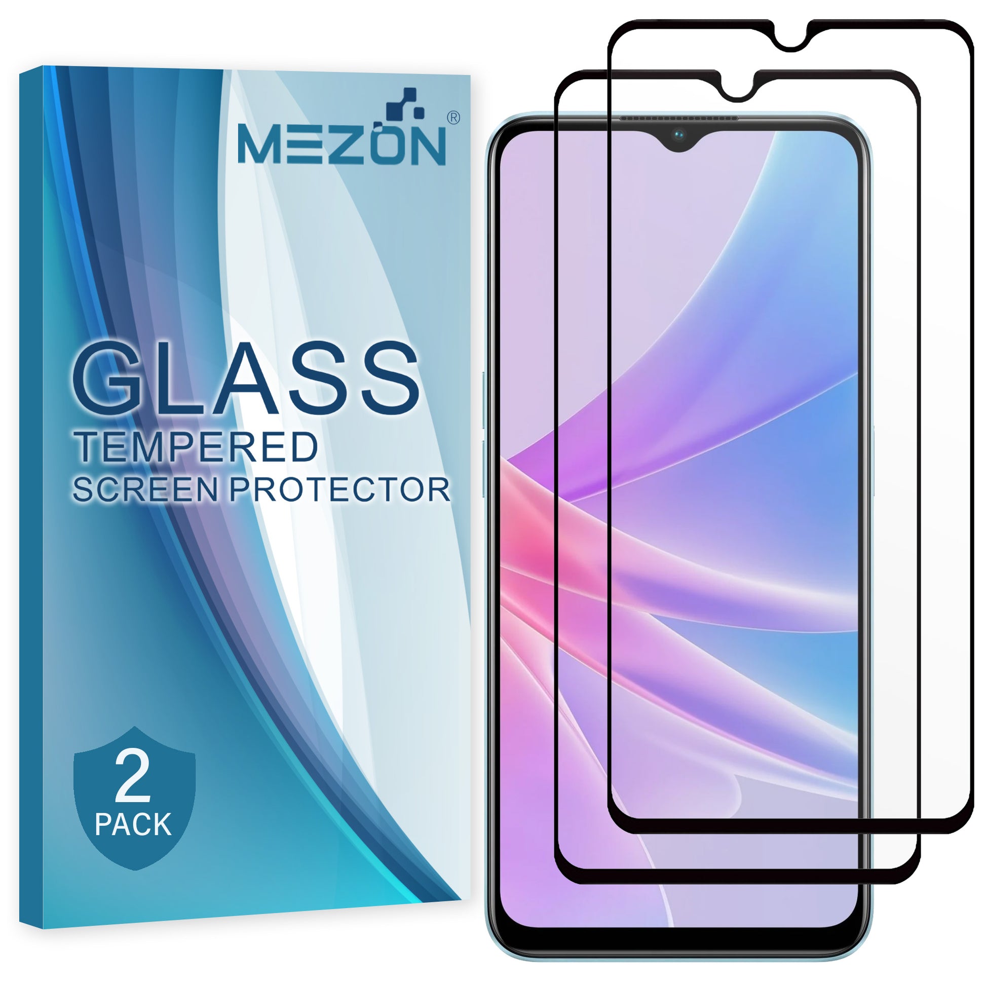 [2 Pack] MEZON Full Coverage Tempered Glass for OPPO A78 5G Crystal Clear Premium 9H HD Screen Protector (OPPO A78 5G, 9H Full)