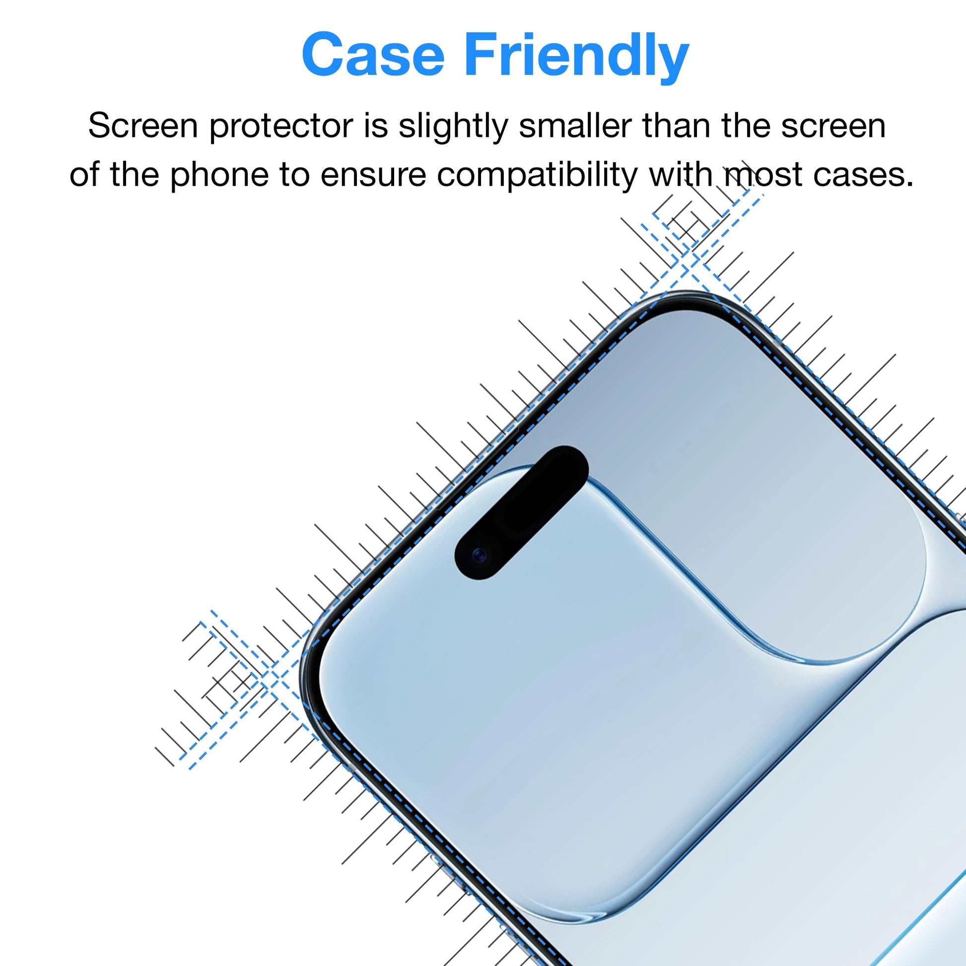 - CASE FRIENDLY – Our screen protectors can be used with any case but will cover only flat part of the screen. Every cut is made with high precision for perfect fit.
