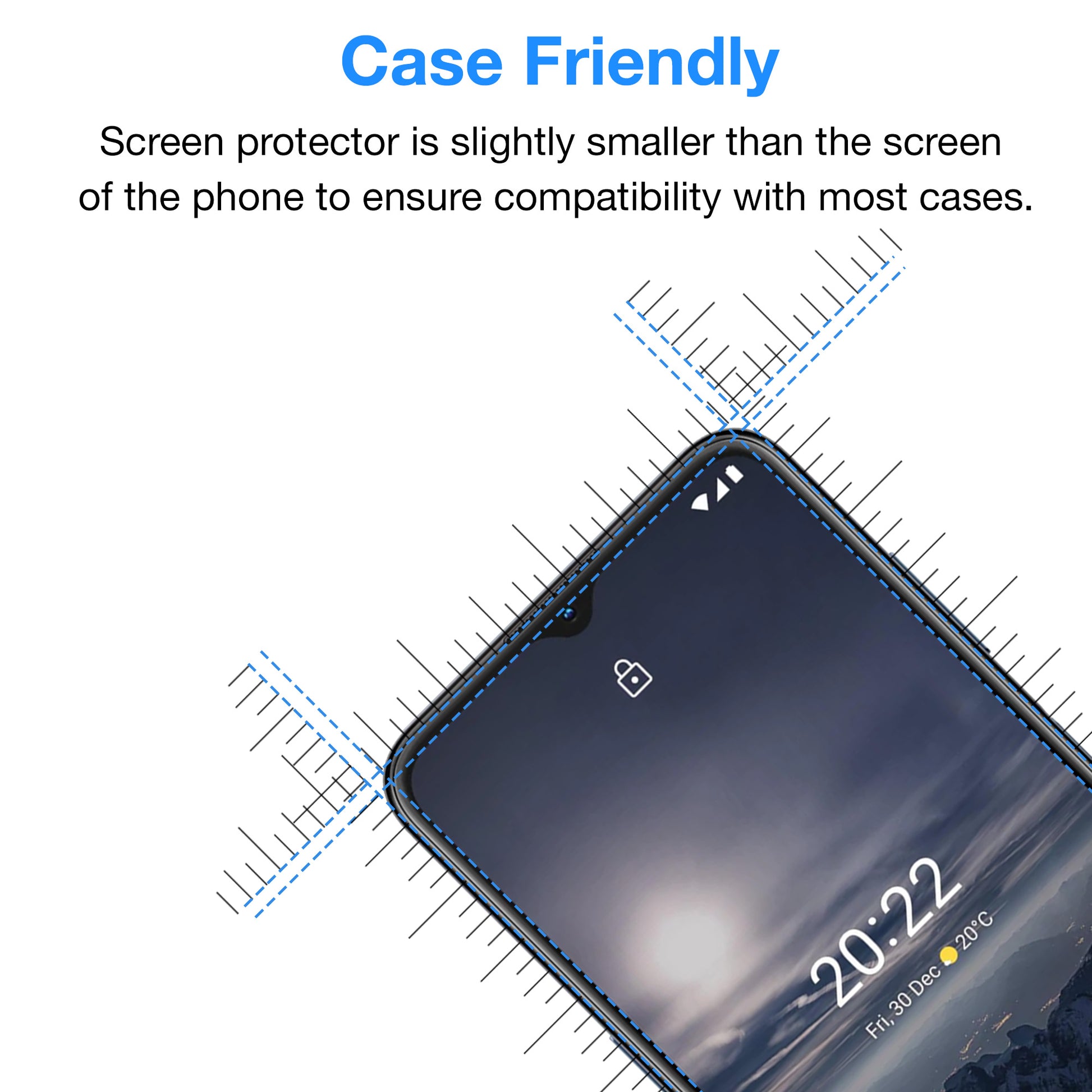 - CASE FRIENDLY – Our screen protectors can be used with any case but will cover only flat part of the screen. Every cut is made with high precision for perfect fit.